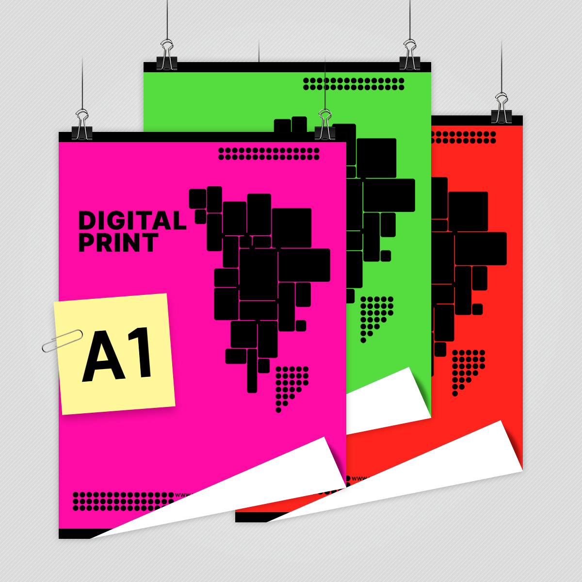 Plakát je vytištěn černým tiskem na barevném papíru, který zajišťuje vynikající viditelnost a ostré detaily. Díky barevnosti plakátu je nepřehlédnutelnou formou prezentace ve výlohách a reklamních plochách.
