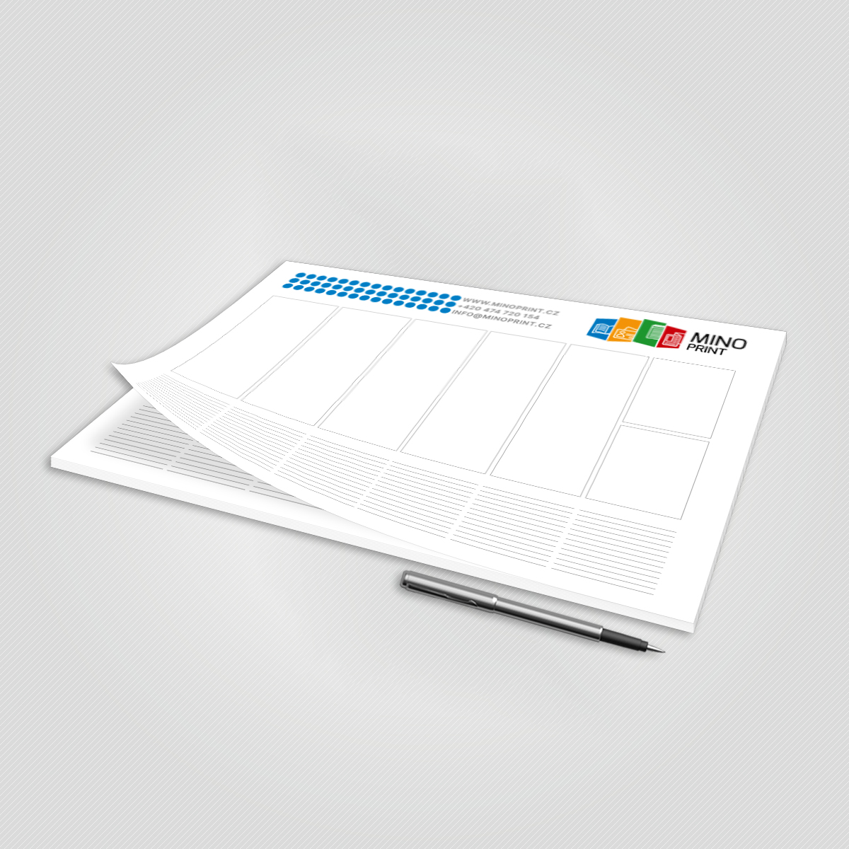 Materiál: papír 80g (26 nebo 52 listů) spodní část podlepená lepenkou